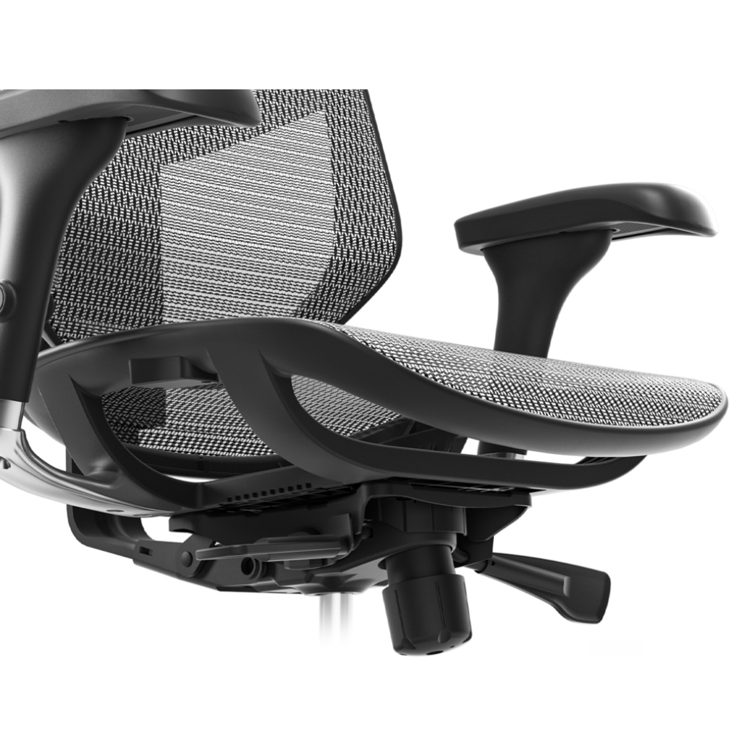 Une manette de réglage de tension est situé sous le siège ergonomique Enjoy. Cette manette permet d'ajuster la résistance de basculement du fauteuil en fonction du poids de l'utilisateur.