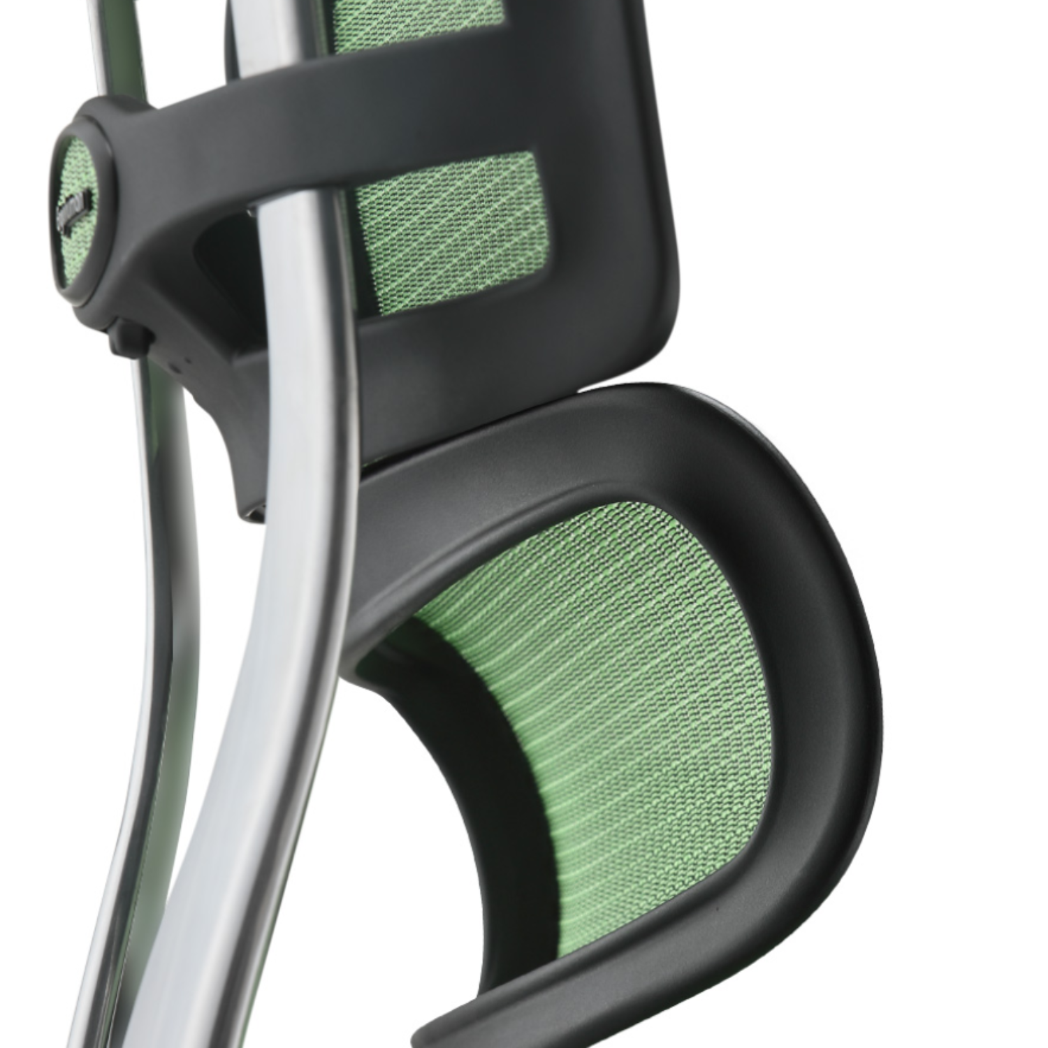 Les accoudoirs du siège de bureau Ergohuman sont également réglables 5D en hauteur, en profondeur, en largeur et en angle, ce qui permet à l'utilisateur de trouver la position la plus confortable pour ses bras et ses épaules. De plus, le siège est équipé d'un appui-tête 2D réglable en hauteur et en angle pour soutenir la tête et le cou.