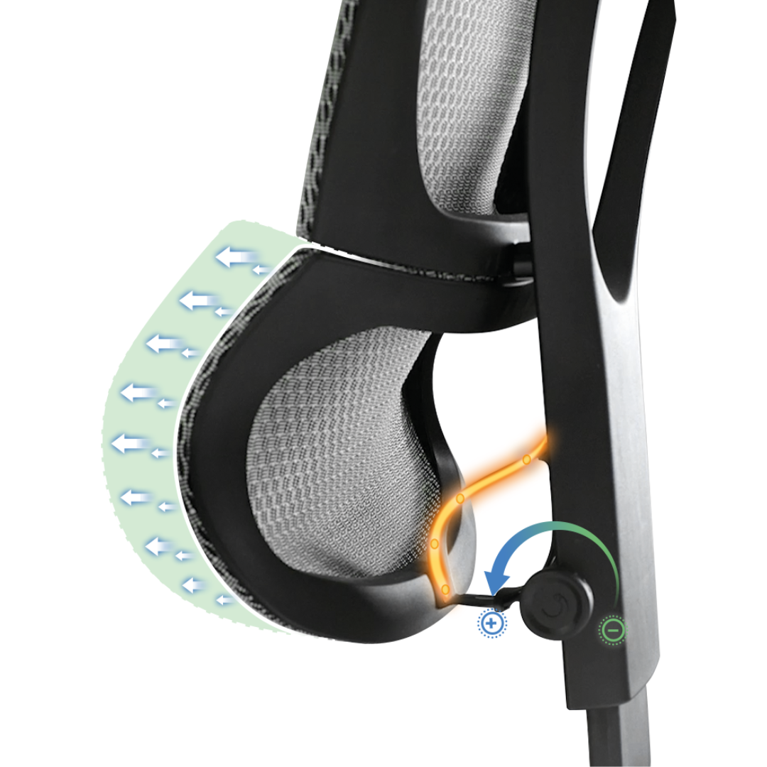 - Soutien lombaire réglable : Profitez d'un maintien parfait du bas du dos, favorisant une posture saine et réduisant les douleurs dorsales.